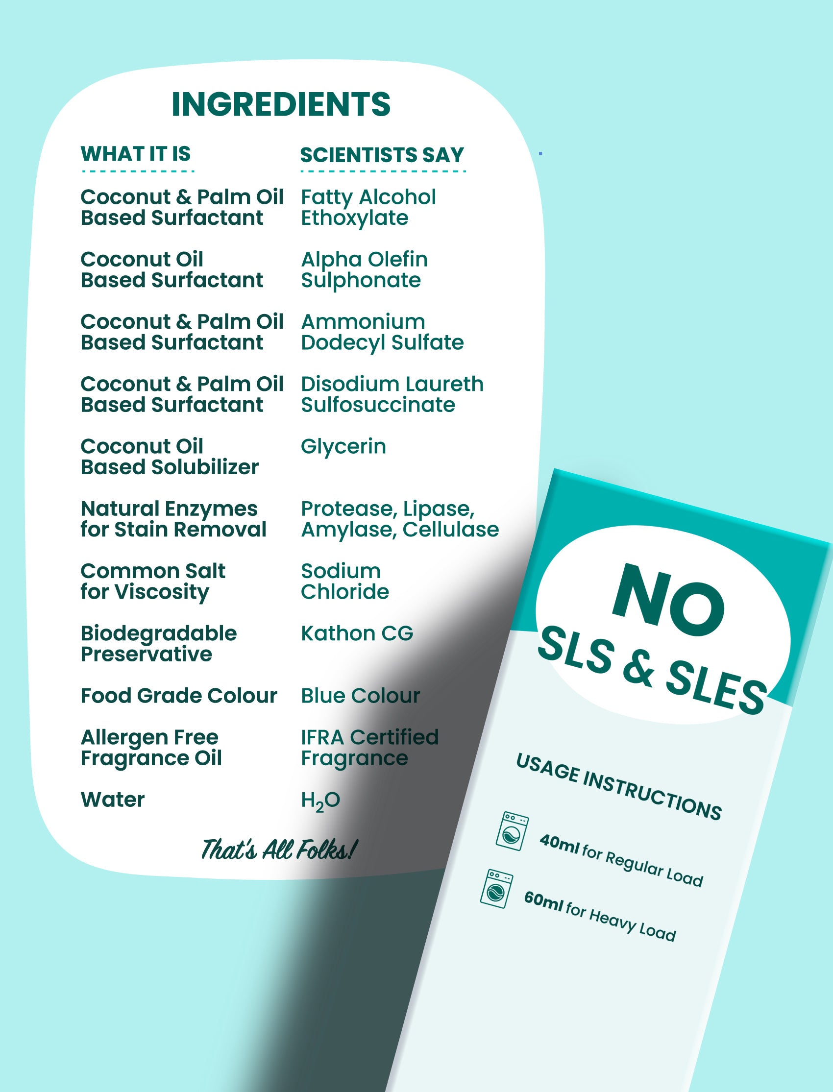 Use 1 cap (40ml) for Regular Loads & 1.5 caps (60ml) for Heavy Loads.