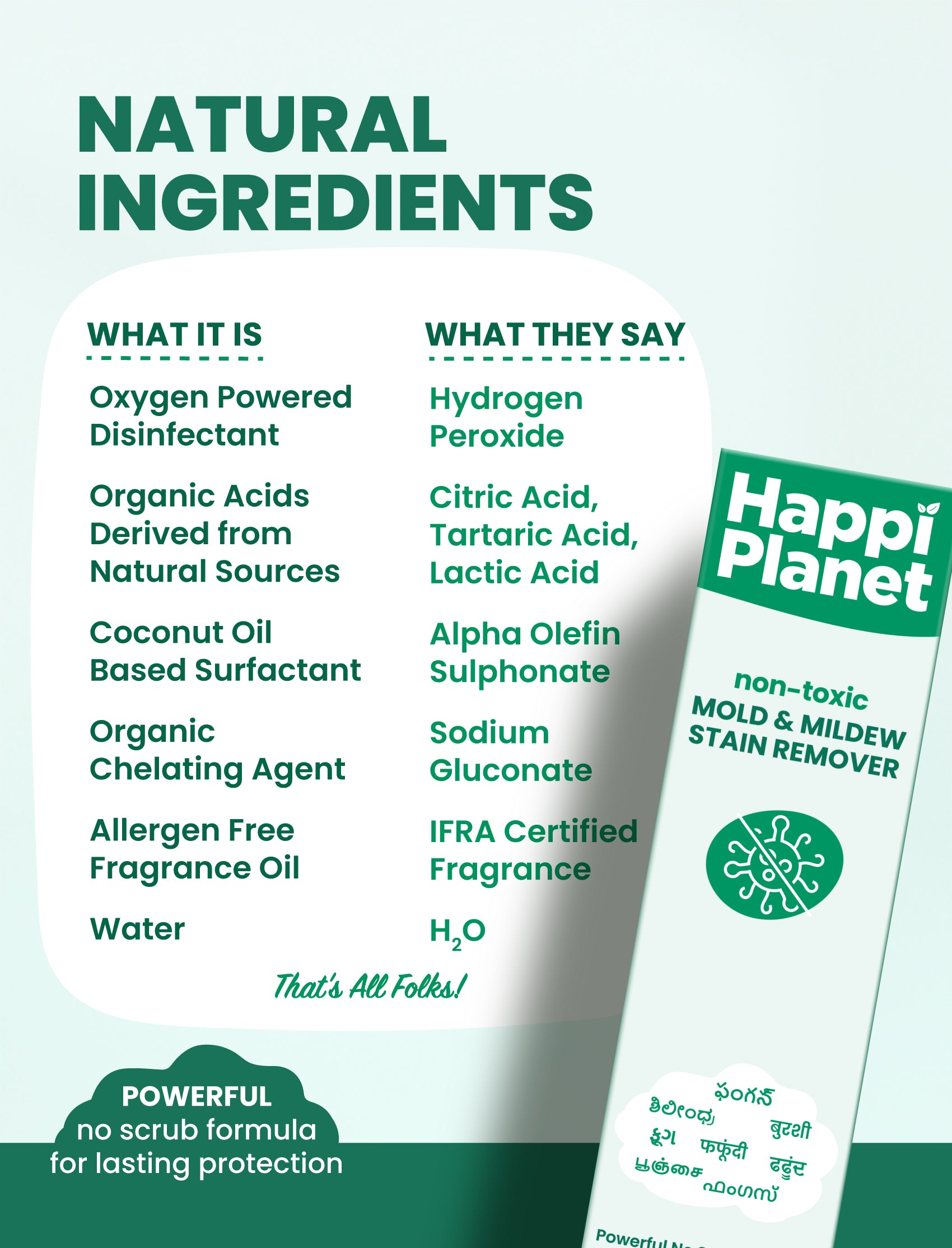 It removes mold & mildew stains using a non-toxic, no-scrub formula.